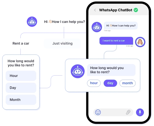 Build advanced chatbots for WhatsApp without any coding skills. Our no code chatbot builder allows anyone to automate interactions and provide real-time responses to users.