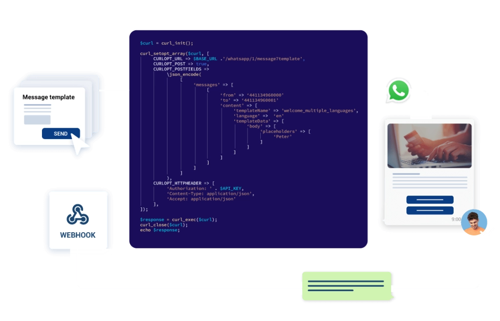 Seamless e-commerce within WhatsApp. Integrate with popular platforms or custom solutions.